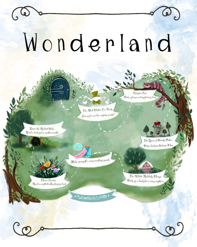 A Touch of Whimsy (Alexandra Roselyn and KalynAbridge) and Middle-Grade Monthly (Jadeyraereads and How To Train Your Gavin) are hosting a readathon called Adventures Through Wonderland. It is a month-long readathon that will take place from September 1 through September 31, 2020.