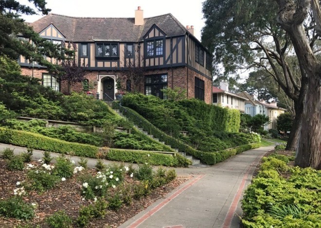 Saint Francis Wood is a breathtaking walk which we start at the corner of Terrace and Portola. The pups and I can only dream about living here. The tree-lined streets, gorgeous gardens, and beautiful architecture of the mansions you pass will leave you in awe. The pups have been almost every day to take our daily walk, and since it’s one of the quieter streets of San Francisco, you feel relaxed.