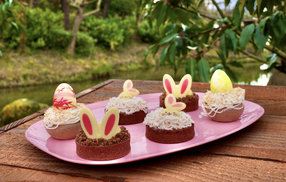 - Easter Bunny Petit Cake: Layers of vanilla chiffon, berry compote, and cream cheese mousse (New) (Currently available through March 31)